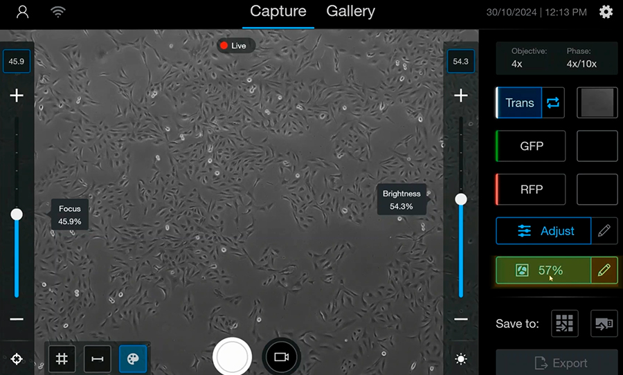 • автоматическое измерение степени конфлюэнтности в реальном времени;