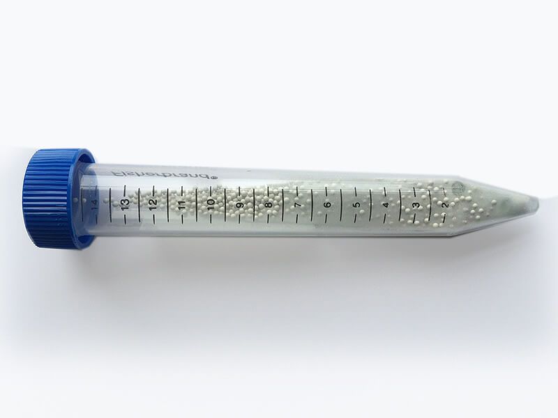 Лизирующая матрица E: керамические шарики d 1,4 мм, шарики из карбида кремния d 0,1 мм и стеклянные шарики d 4 мм.