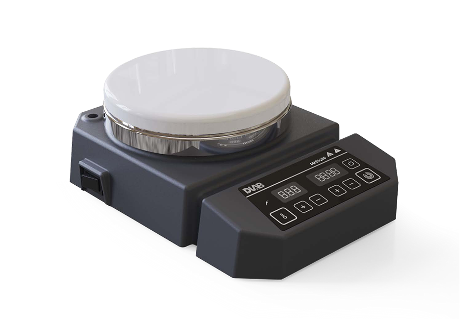 Магнитные мешалки с нагревом DMS4-550 — нагревают до 550 °С, и перемешивают до 10 л жидкости на стеклокерамической платформе, размером платформы 100×100 мм, со скоростью перемешивания 50-1500 об/мин.