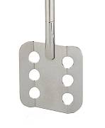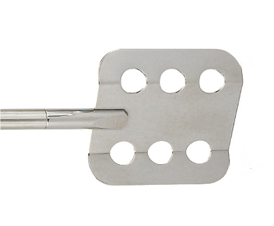 Перемешивающий элемент с плоской квадратной перфорированной лопастью, для щадящего перемешивания сред низкой вязкости на низких и средних скоростях.