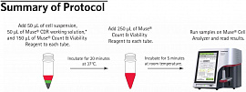 Флуоресцентные реагенты уже подобраны под лазер и детекторы Muse, оптимизированы для разных типов клеток.