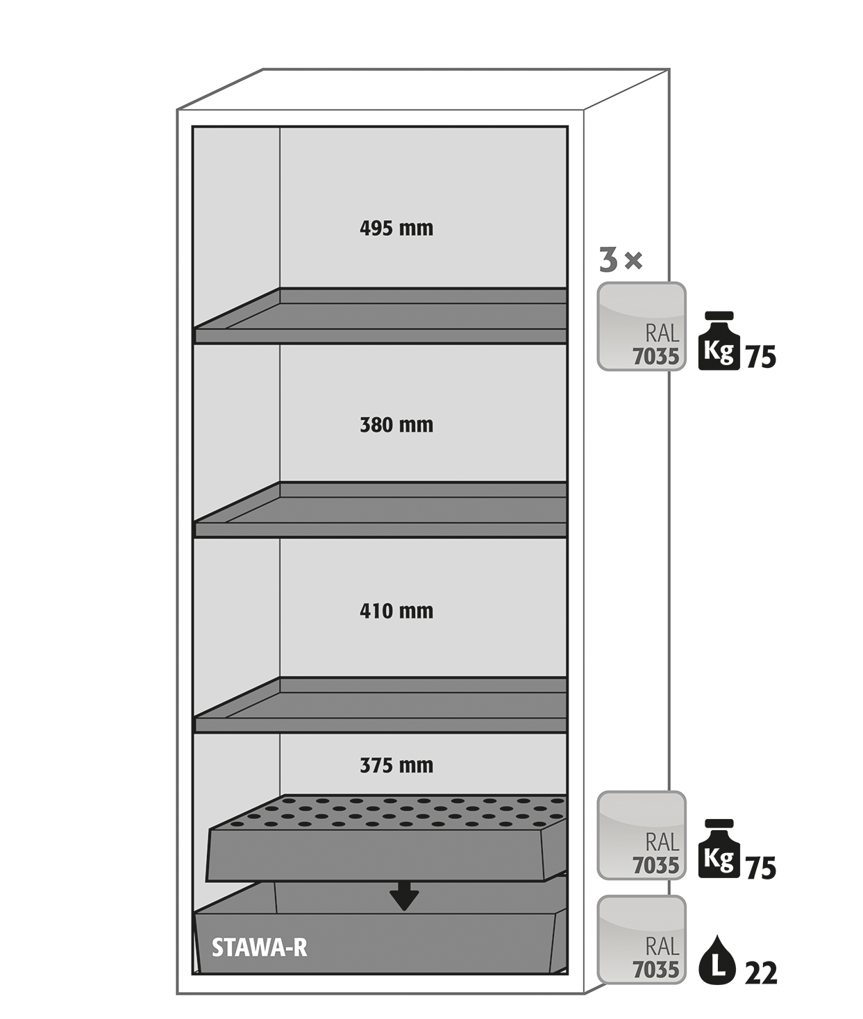 S-Classic-90 ― шкафы для апробированного раздельного хранения различных опасных веществ (прекурсоров и пожароопасных материалов), огнестойкость