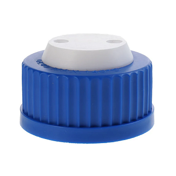 Крышка имеет два отверстия для трубок с внешним диаметром 1/8" (~3,2 мм). Можно использовать для ассептического переноса жидкости. Материал крышки выдерживает температуру до +140 °С