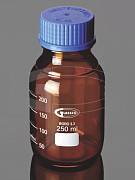Бутыль 500 мл, БС до 500 °C, GL45, с завинчивающейся ПП крышкой, круглая, светлое стекло, Glassco, Индия