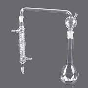 Дистилляционный аппарат с конденсатором Грэма изготовлен из термостойкого боросиликатного стекла 3,3 с низким коэффициентом расширения.
