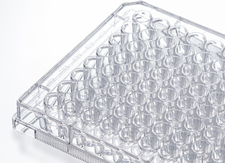 На боковой стороне пластины имеется нескользящий выступ для удобства захвата. Штабелируемая конструкция для экономии места. Крышка и корпус планшета плотно прилегают друг к другу, исключая контаминацию и потери от испарения в процессе культивирования клеток. На дно планшет нанесена буквенно-цифровая маркировка, облегчающая идентификацию и регистрацию образцов.