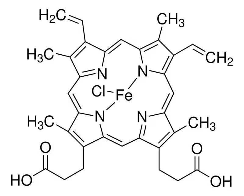 Синонимы: хлоргемин, хлорпротопорфиринато железа(III), хлоргемин, хлорпротопорфирин IX железа(III).